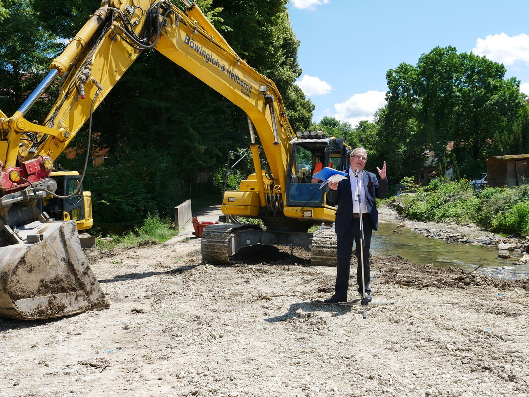 Bezirksbürgermeister Friedemann Rupp betonte: »Das ist ein guter Tag für Betzingen, jetzt geht es endlich los, wir haben seit Jahrzehnten auf diesen Moment gewartet.« Jedoch verwies der Ortsvorsteher auch auf diejenigen Betzinger, die Teile ihrer Grundstücke an der Echaz für den Hochwasserschutz hergeben mussten – »und die nicht ganz so begeistert sind wie ich«.