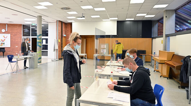 REUTLINGEN. Bis 14 Uhr lag die Wahlbeteiligung der Nicht-Briefwähler in Reutlingen bei 37,41 Prozent. Zumindest in den vier Wahllokalen Sporthalle Bronnweiler, Gemeindezentrum Hohbuch, Laura-Schradin-Schule und Turnhalle Oferdingen. In diesen vier Wahllokalen wird die Beteiligung nämlich bis 18 Uhr stündlich von der Stadtverwaltung abgefragt. »Das ist bislang eine wirklich hohe Wahlbeteiligung«, bilanziert Wahlleiterin Davina Klemm. »Auch die Rückmeldungen, die wir aus den einzelnen Wahllokalen bekommen haben, zeugen von einer hohen Beteiligung.«
