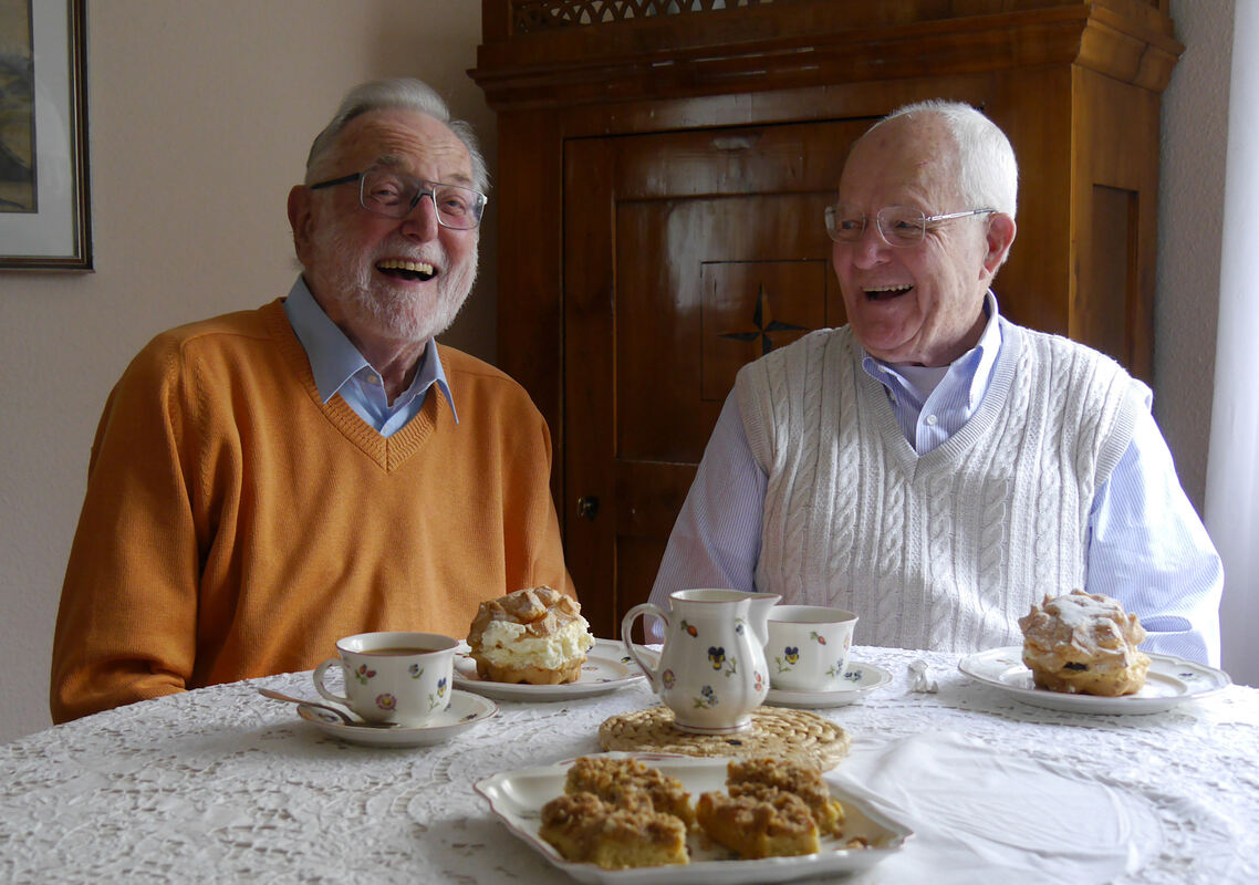 Ziemlich beste Freunde, und das seit siebzig Jahren! Rudolf Walz (links) in Betzingen hat zum neunzigsten Geburtstag Besuch aus Kalifornien bekommen, von seinem ehemaligen Kommilitonen Everett Stanley. FOTO: SCHÄLE-SCHMITT