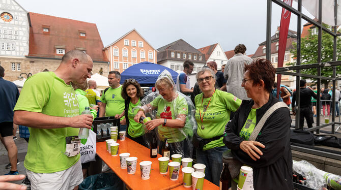Vom Start weg beklatscht und bejubelt werden die Sportlerinnen und Sportler beim Reutlinger Altstadtlauf. FOTOS: SCHANZ