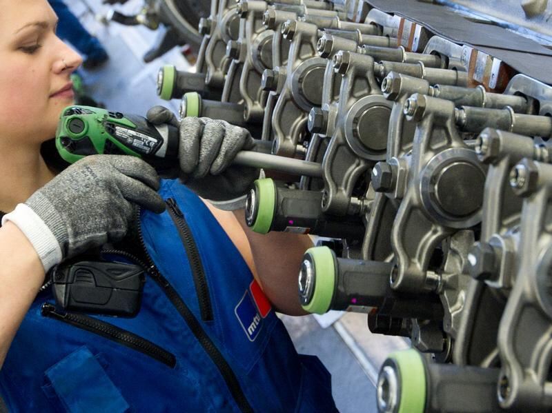 Eine Auszubildende schraubt an einem Motor. Foto: Tobias Kleinschmidt /Archiv