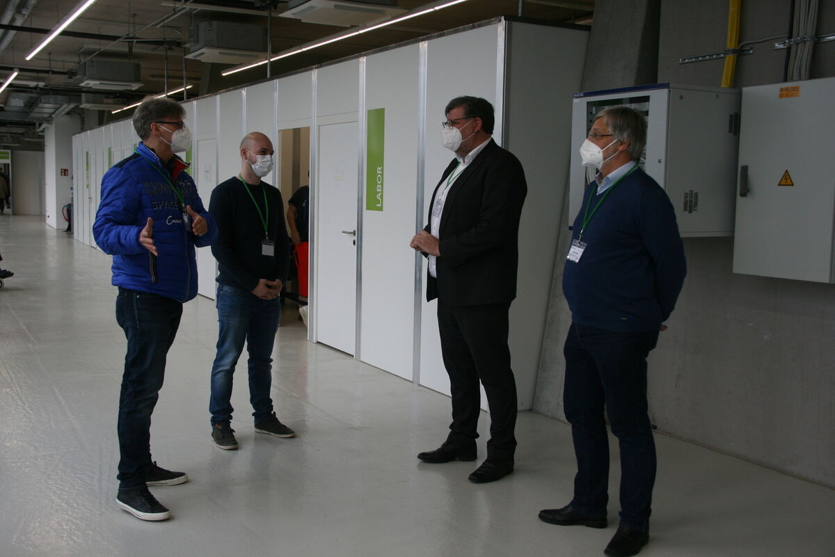 Bei einem Besuch vor Ort machte sich Landrat Dr. Ulrich Fiedler ein Bild über die Abläufe und die Organisation im KIZ. Fiedler dankte den zahlreichen Helferinnen und Helfern, die im KIZ tätig sind. Alle, von Reinigungskräften über Security, Floor-Guides, Mitarbeiterinnen und Mitarbeiter des Landratsamts bis hin zu medizinischem Fachpersonal sowie Ärztinnen und Ärzte würden einen klasse Job machen, wie Fiedler betonte.