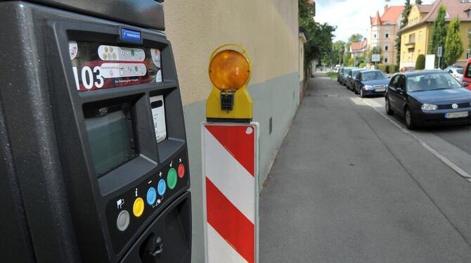 Schon auf-, aber noch nicht scharf gestellt: 50 Parkuhren in der Oststadt warten auf ihren Dienstbeginn.