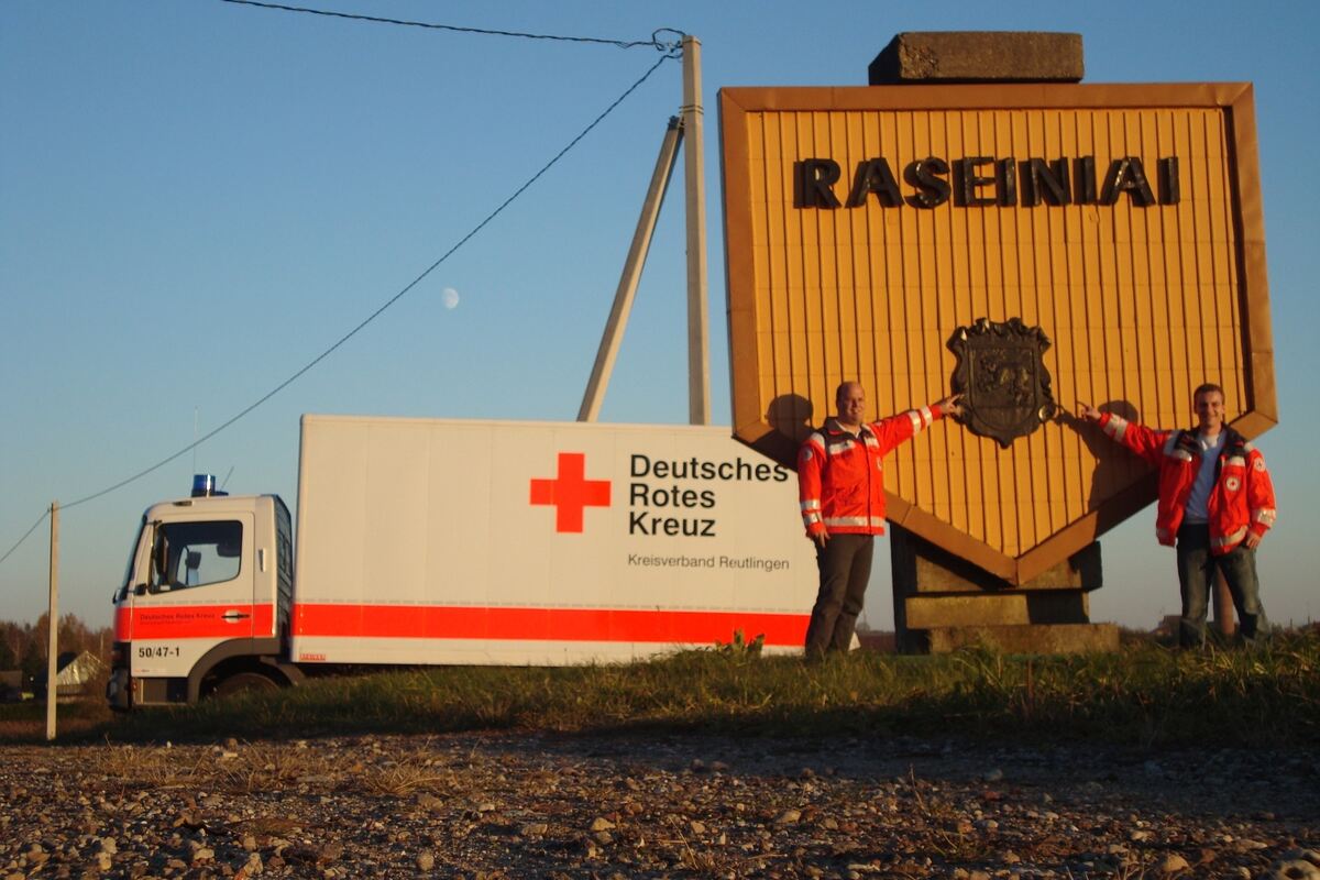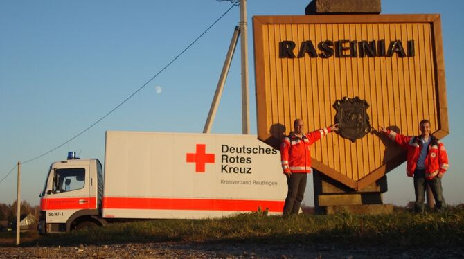 Ankunft im litauischen Raseiniai: die Rotkreuz-Männer waren mit einem Hilfstransport auf Achse und erlebten soziale Probleme hautnah. FOTO: PR