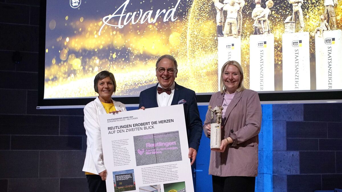 REUTLINGEN/STUTTGART. Reutlingen hat beim renommierten Staatsanzeiger Award den ersten Platz in der Kategorie Bürgerbeteiligung gewonnen. Mit ihrer unkonventionellen Kampagne »Reutlingen kannst du nicht mögen – nur lieben« setzte sich Reutlingen gegen 33 weitere Bewerbungen durch, heißt es in einer Pressemitteilung der Stadtverwaltung. Oberbürgermeister und Aufsichtsratsvorsitzender der Stadtmarketing und Tourismus Reutlingen GmbH (StaRT), Thomas Keck, zeigte sich bei der Verleihung in Stuttgart erfreut über die Auszeichnung: »Die Kampagne hat eindrucksvoll bewiesen, wie stark die Menschen mit Reutlingen verbunden sind. Es ist großartig zu sehen, wie viel Herzblut in unserer Stadt steckt. Dieser Preis gehört allen, die sich eingebracht haben. Mein besonderer Dank gilt dem Aufsichtsrat und vor allem auch dem Markenbeirat von StaRT, der eine zentrale Rolle bei der Umsetzung gespielt hat, sowie dem Gemeinderat für das Vertrauen in diese mutige und unkonventionelle Kampagne.«