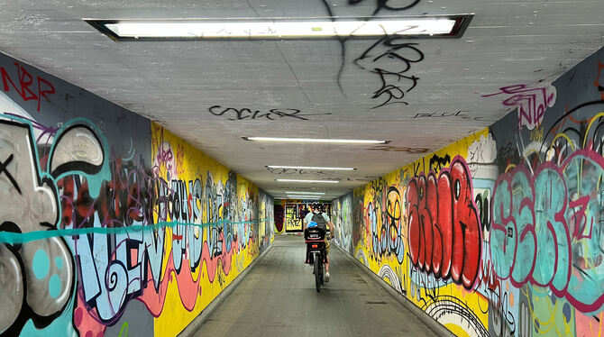Die meisten öffentlichen Flächen in der Region, auf denen legal Graffitis gesprayt werden dürfen, gibt es in Reutlingen: Sieben sind es insgesamt. Wobei die Stadt nur zwei Orte zur Verfügung stellt, die jederzeit zur freien Gestaltung stehen, wie Aram Jaich von der Abteilung Jugend mitteilt. Das sind die nicht-überdachten Zugänge zur Unterführung am Westbahnhof und die Graffiti-Fläche im Volkspark, auch unter dem Namen »Roter Hof« bekannt. An beiden Spots gelte der »Sprayer-Codex« der besagt, dass neue Werke eine Zeit lang nicht übermalt werden. Schnellstmöglich entfernt werden dagegen alle »sitten- und rechtswidrigen Inhalte«.