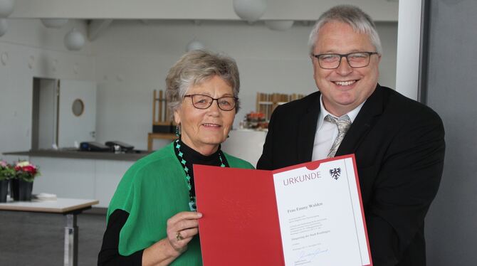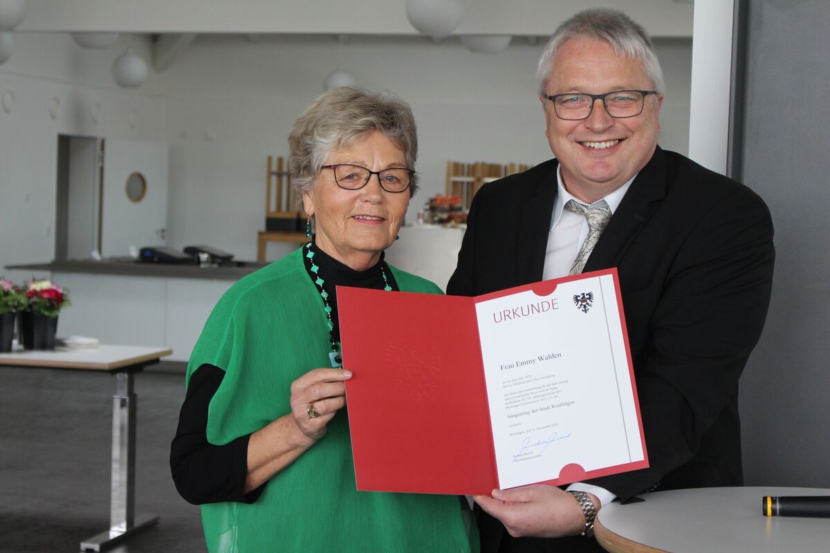 Robert Hahn ehrte Emmy Walden für ihre 40-jährige Mitgliedschaft. FOTOS: SPIESS