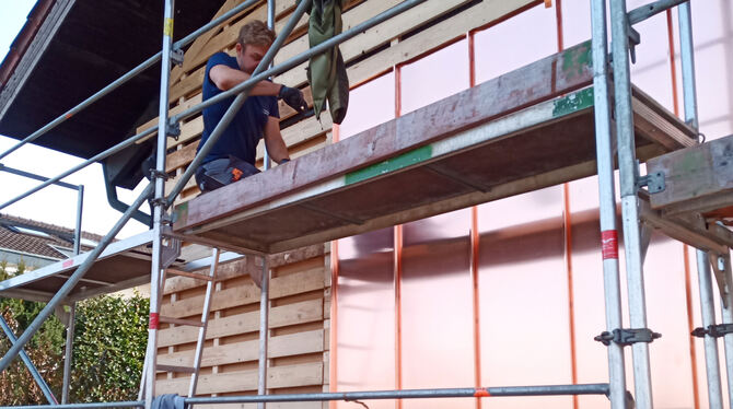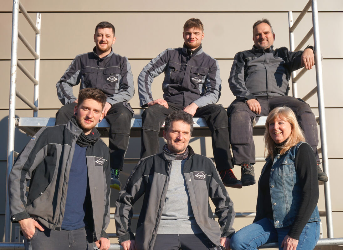 Herzblut in der Ausführung der Aufträge im Dach- und Fassadenbau. Das Künstle-Team im Einsatz, vorne Alexander  Künstle