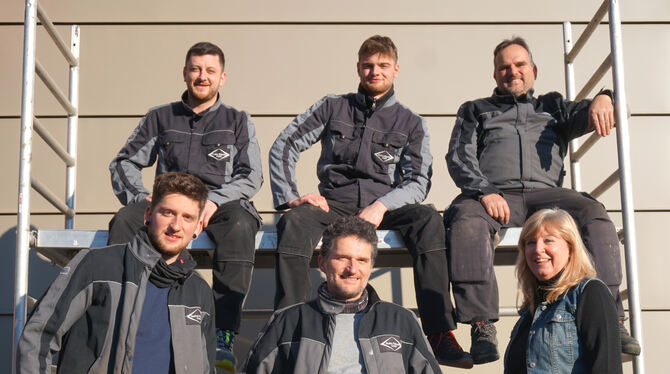Herzblut in der Ausführung der Aufträge im Dach- und Fassadenbau. Das Künstle-Team im Einsatz, vorne AlexanderKünstle Foto: PR