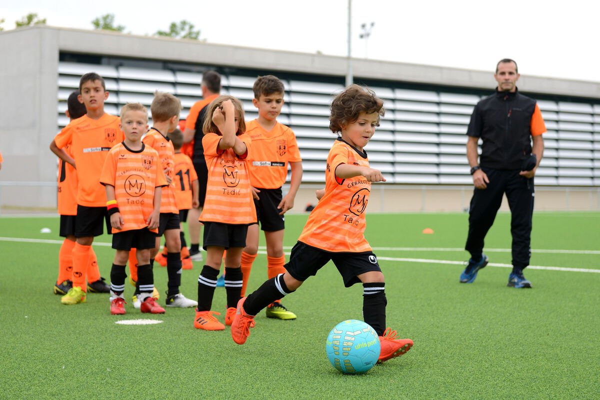 So geht das: Die Bambini der Spielgemeinschaft Reutlinger Juniors zeigten mit viel Elan, wie man Tore schießt. FOTOS: PIETH