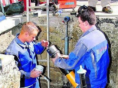 In der Betzinger Leyrenbachstraße ersetzen Andreas Blümel (links) und Sascha Schweikardt, Lehrling im dritten Jahr, 50 Jahre alte Gas- und Wasserleitungen gegen neue, hoch feste Kunststoffrohre aus.