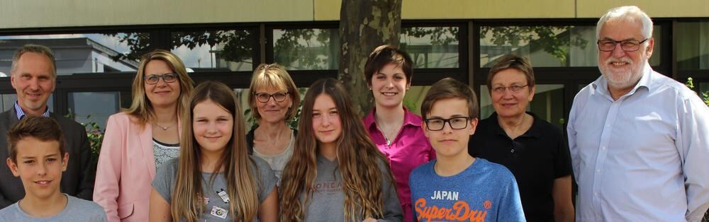 Mitmachen Ehrensache: St.-Wolfgang-Schüler der Klassenstufe 7 mit Schulleiter Peter Roth (rechts) und anderen Projektbeteiligten. Ulrike Reiber (Dritte von links) überbrachte eine Spende der Südwestbank Reutlingen. FOTO: SPIESS