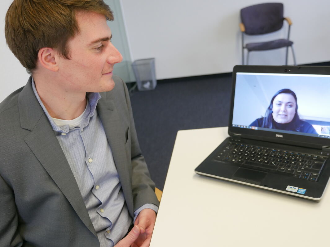 Sie treiben die bundesweite Initiative »Joblinge« voran: Duygu Utku (rechts) im Online-Gespräch mit Philipp Dreizler. FOTO: LEISTER
