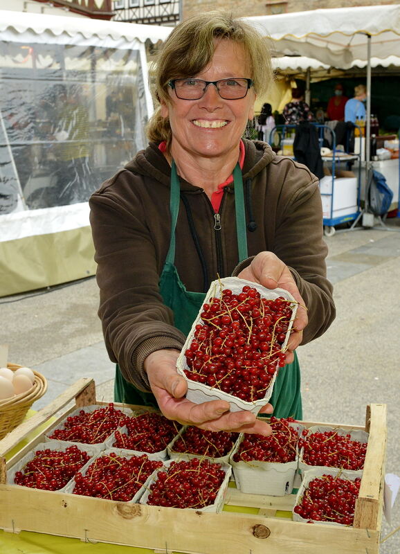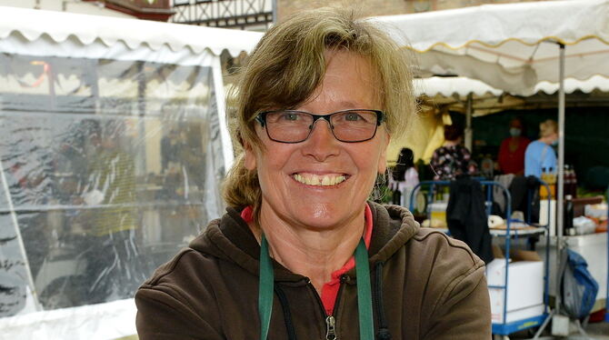 Ist seit 35 Jahren auf dem Reutlinger Wochenmarkt präsent: die Neuhäuser Selbsterzeugerin Monika Warwel. FOTO: NIETHAMMER