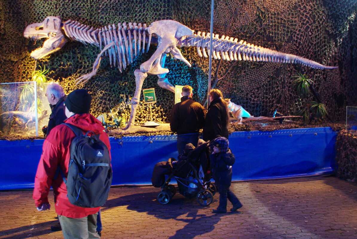 Zwei der Dinosaurier, der T-Rex und ein Velociraptor, können sich sogar bewegen. Für den SpielbergFilm »Jurassic Park« wurden sie in den Filmstudios Berlin-Babelsberg mit Elektromotoren ausgestattet. Als Akteure dieses Hollywood-Thrillers sind sie die prominentesten Vertreter bei dieser Ausstellung. Ihre Bekanntheit stieg weiter durch einen großen Auftritt 2009 in der ZDF-Sendung »Wetten, dass…«.