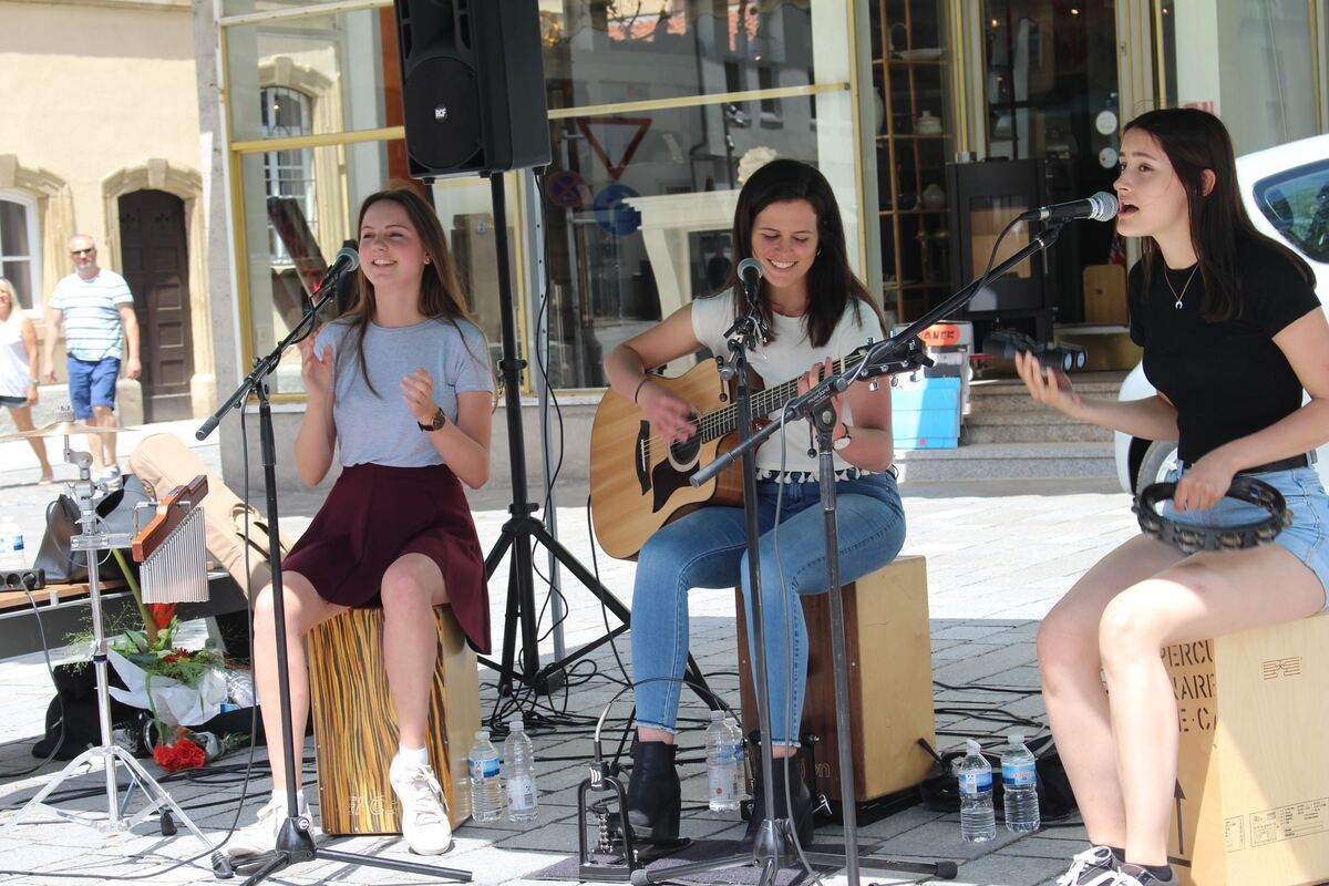 Nicht nur die Diskussion, auch das Rahmenprogramm der Köpfe-Veranstaltung ist an diesem sonnigen Samstag auf junge Leute abgestimmt: So konnte man sich bei einem Fußball-Parcour des SSV Reutlingen sportlich betätigen und das Mädchentrio »Golden Gees« sorgte mit charmanten Coversongs für popmusikalische Unterhaltung. (GEA)