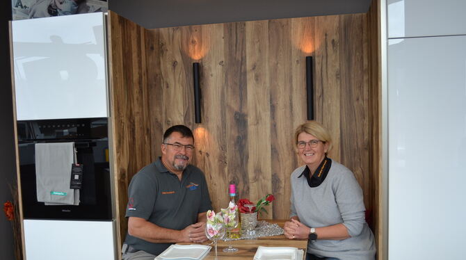 Pfullingen.Ein großes Event mit Koch-Shows zum 50. Jubiläum? »Dazu sind wir nicht groß genug, das würde unsere Kapazitäten übersteigen«, sagt Sandra Herrwerth. Sie kennt ihre Grenzen. Aber sie kennt auch ihre Qualitäten und die ihres Unternehmens, und auf die ist sie stolz. Das Geschäft sind sie und ihr Mann Udo Herrwerth. Sie ist die Frau am Schreibtisch, sie fragt die Wünsche und Bedürfnisse der Kunden ab und berät. Die Möbelhersteller liefern passgenau, den Einbau übernimmt dann ihr Mann mit Helfern. Bei Arbeiten, die über den Einbau hinausgehen – malern, Fliesen legen oder Elektrik – arbeitet Küchen Boley mit Pfullinger Betrieben zusammen. Ob es sich um eine große Familienküche oder eine Küchenzeile für einen Single-Haushalt handelt, ob Sonderwünsche wie Unterfahrbarkeit für Rollstuhlfahrer zu berücksichtigen sind – Sandra Herrwerth plant Küchen für jeden Grundriss, für große und kleine Budgets. Ihre Entwürfe zeigt sie als 3-D-Animation, wobei unterschiedliche Böden und Oberflächen eingespielt werden können, so dass jeder Kunde ein realitätsnahes Bild seiner künftigen Küche vor Augen hat. Erste Anregungen bietet die Ausstellung in der Daimlerstraße 7, die auf rund 300 Quadratmetern zeigt, wie die Küche zum Lebensraum wird. Musterküchen mit Möbeln der Hersteller Ballerina und Nobilia und eine große Palette an Materialmustern für Arbeitsplatten und Oberflächen veranschaulichen die vielen Möglichkeiten. Im technischen Bereich setzt Küchen Boley mit Geräten der Hersteller Berbel, Bosch, Miele und Neff auf Qualität. »Küchen zum Kochen« ist für Sandra Herrwerth nicht nur ein Slogan. Als praktisch veranlagte Hausfrau und Mutter möchte sie, dass die Küchen, die sie plant, belebt und genutzt werden. »Es macht mich glücklich, wenn eine Kunde nach 15 Jahre kommt wegen einer kleinen Ausbesserung, aber mit seiner Küche noch glücklich und zufrieden ist!« sagt sie. Und tatsächlich kommt während des Gesprächs eine Kundin und bedankt sich mit einer Flasche Wein für eine schnell und unkompliziert ausgeführte Reparatur.