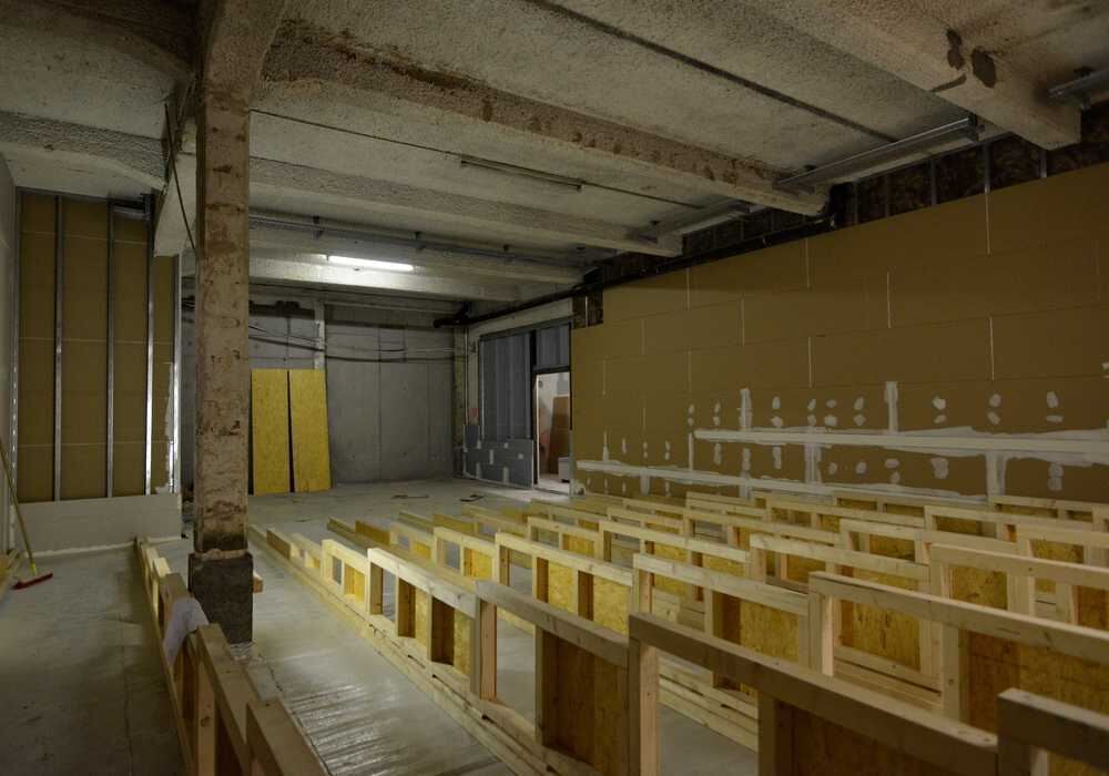 Die Basis für die ansteigende Kino-Bestuhlung im künftigen »Kamino« ist bereits gelegt. Das Foto zeigt den Besucherraum in Blickrichtung Leinwand.