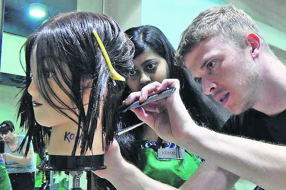 Schneiden, färben, stylen: Manuel Naso hatte zwei Wochen Zeit, sein Wissen an Inderinnen weiterzugeben. FOTO: SCHWARZKOPF DELHI