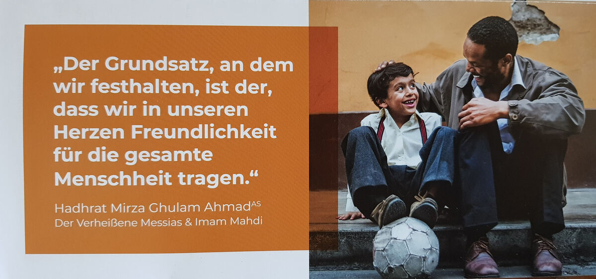 Zitate aus dem Koran, des »Heiligen Propheten Muhammad« und von Mirza Ghulam Ahmad, der die Ahmadiyya-Bewegung in den 1880er-Jahren in Indien begründete, begegnen den Menschen im Landkreis Reutlingen bis zum 2. November auf Plakaten an der Straße, wahrscheinlich eher noch auf Flyern, die sie aus dem Briefkasten fischen. An den Samstag, 7. November und 5. Dezember, sind Vertreter der religiösen Gruppe von von 10 bis 14 Uhr am Spitalhof anzutreffen.