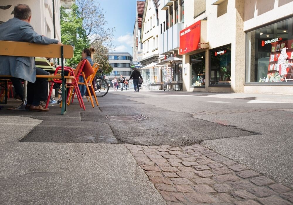 Die Oberamteistraße Richtung Fußgängerzone wurde saniert, die geflickte Kanzleistraße jedoch nicht.