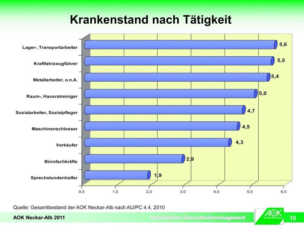 Ausgewählte Berufe im Vergleich: Schwere körperliche Arbeit macht krank, aber auch Sozialarbeiter liegen über dem Schnitt. GRAFIK: AOK