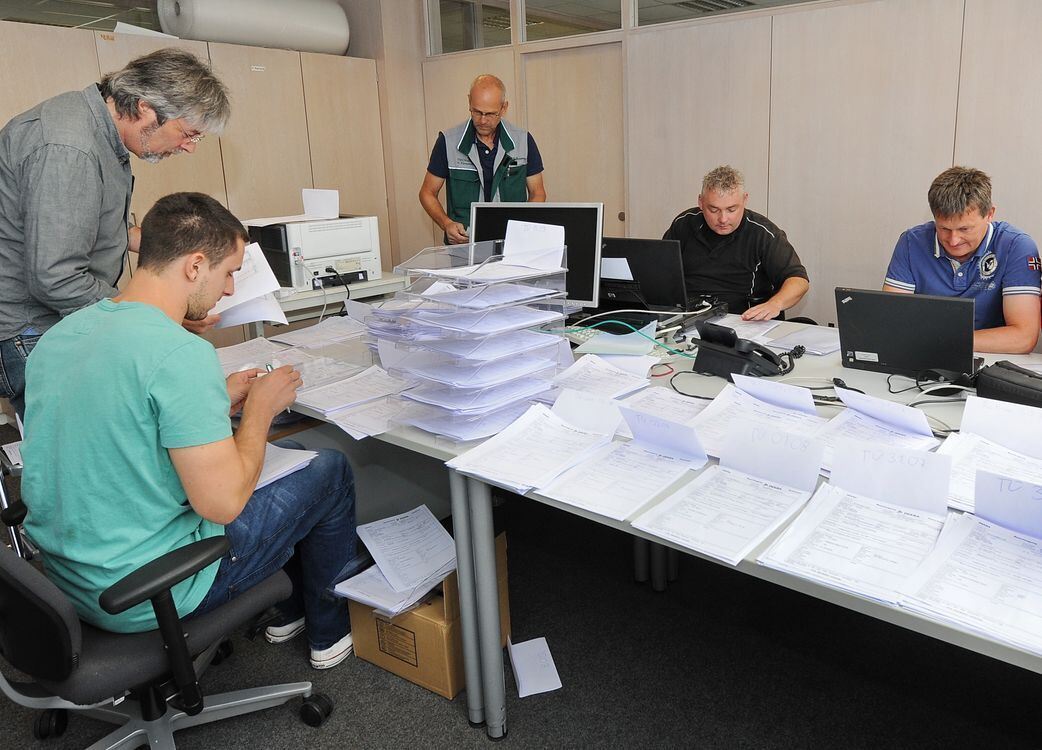Sachverständige im Dauerstress: Die Dekra-Mitarbeiter haben Berge von Gutachten abzuarbeiten. GEA-FOTO: PACHER