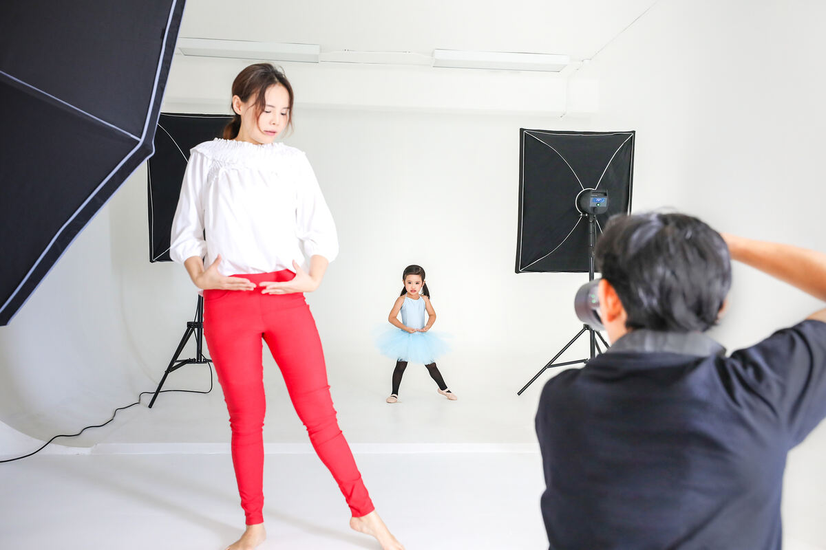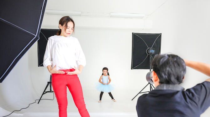 Kinder lassen sich in einem Fotostudio fotografieren.