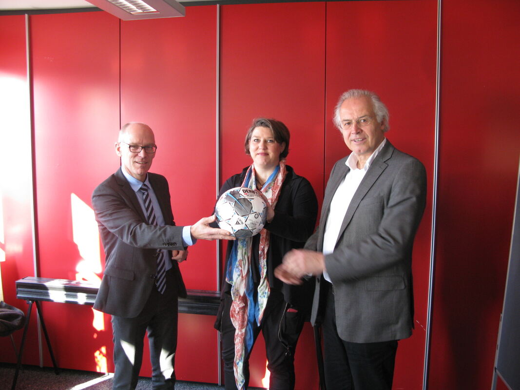 Damit der Nachwuchs in Vereinen am Ball bleibt: Uwe Weber (links), Jutta Fundel und Dr. Werner Ströbele stellten die Schnuppermitgliedschaft für Kinder vor. FOTO: SCHITZ