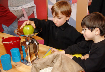 Ja, was wiegt er denn, der Apfel? Die Spiel-Insel »Kilo-Meter« ist ein Paradies für kleine Handwerker und Händler, die gerne einmal messen und wiegen.