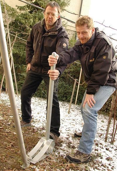 Hebelkraft für den ultimativen Campingspaß: Bruno Götz (rechts) und Jürgen Holder haben den so genannten Heringsfuß erfunden.