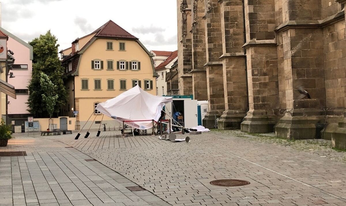 14:53 Uhr Es geht los. In der Reutlinger Innenstadt ziehen dunkle Wolken auf, es windet heftig. Gastronomen verstauen hektisch ihre Tische und Stühle. Die Corona-Teststation an der Marienkirche ist eingeknickt. Fahrradfahrer und Fußgänger verlassen fluchtartig die Altstadt.