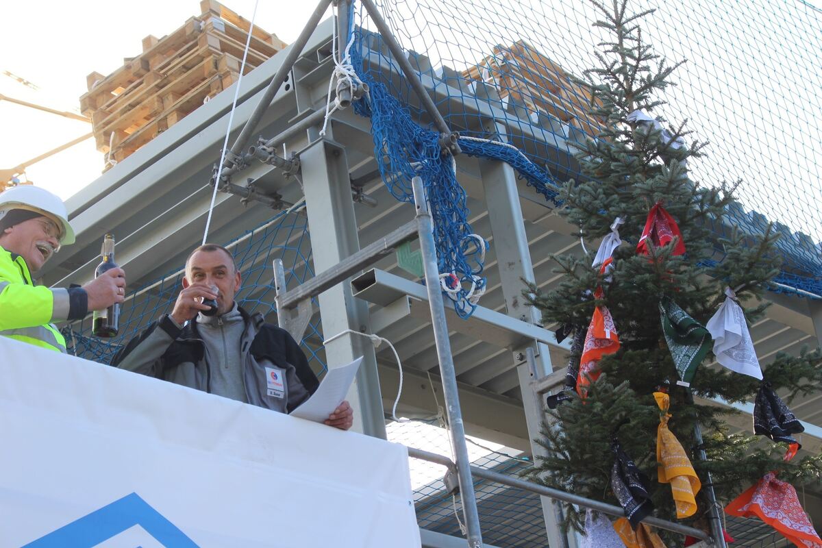 Prösterchen: Gestern wurde das Richtfest des neuen Betriebsgebäudes beim Klärwerk West gefeiert. FOTO: SPIESS