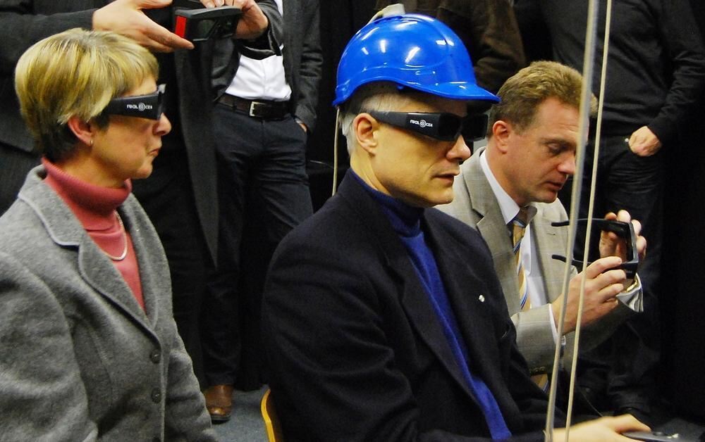Im Akustiklabor der Uni Stuttgart (von links): Fördervereins-Vorsitzende Heidemarie Arnold, Chefdirigent Ola Rudner und Intendant Cornelius Grube. FOTO: SV