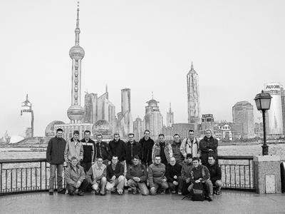Reutlinger Berufsschüler vor der Skyline des Finanz- und Wirtschaftsviertels Pudong.