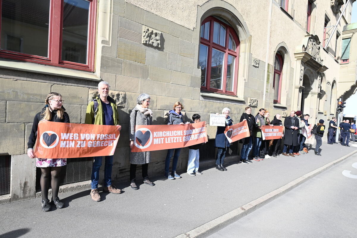 Mahnwache vor Prozessbeginn gegen Mitglieder der »Letzten Generation« am Reutlinger Amtsgericht.
