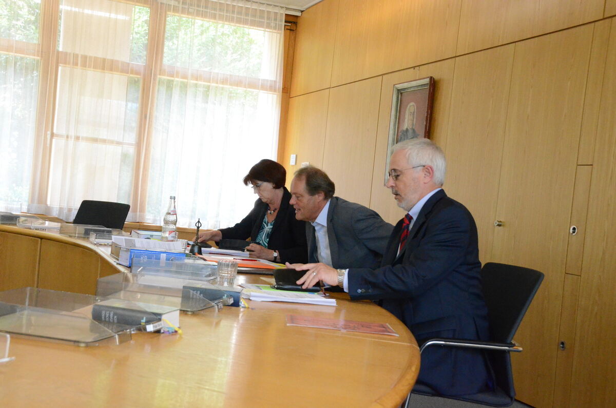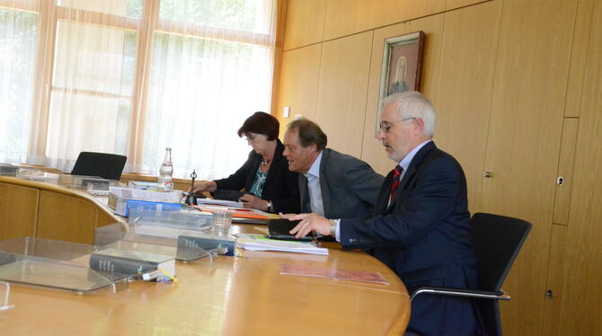 »Bauchgefühl ist fehl am Platz«: Vorsitzender Richter Ernst Amann-Schindler (Mitte), ihm zur Seite Mitarbeiter-Vertreterin Hannelore Zinßer und Ralf-Rüdiger Kirchhof, Geschäftsführer der Evangelischen Heimstiftung.