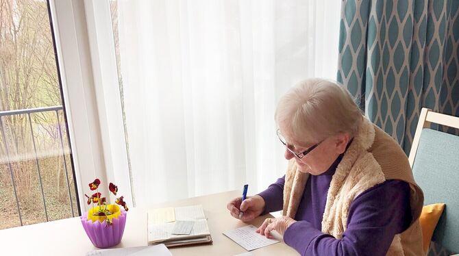 REUTLINGEN. Sie sind doppelt belastet: Ältere Menschen gehören nicht nur zur Risikogruppe, sie leiden zudem unter der Zwangsisolation, in die sie die Coronaverordnung zu ihrem Schutz gebracht hat. Die Umarmung mit einem Freund oder Familienangehörigen kann niemand ersetzen. Aber mit der verbalen Kommunikation »kann man sich über Wasser halten«, meint Erna Lips, die im März in das Seniorenheim Haus zur Dorfschule in Rommelsbach gezogen ist, nachdem ihr Mann kurz vorher verstorben war.
