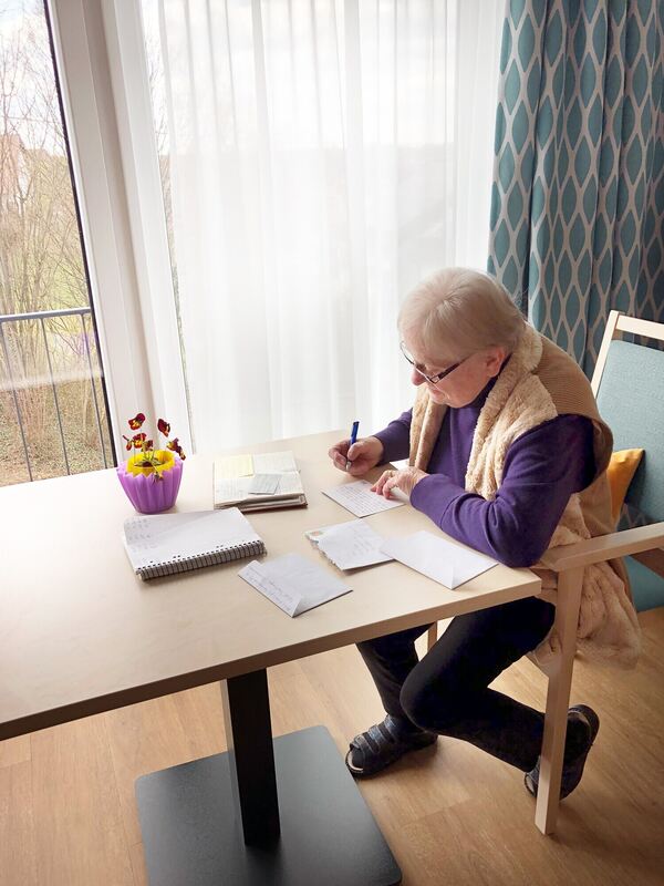 Die 83-Jährige hat in den vergangenen Wochen noch häufiger als sonst mit Bekannten und der Familie telefoniert. Und sie hat das Briefeschreiben intensiviert – auch auf Anregung des Betreuungsteams der Reutlinger Altenhilfe (RAH). Katrin Kilian, Koordinatorin der therapeutisch-aktivierenden Dienste, berichtet von positiven Erfahrungen mit der Aktion »Kontakthalten«: In den sechs Häusern der RAH versuchen die Mitarbeiter, den Außenkontakt ihrer Klienten auf allen Kanälen in Gang zu halten.