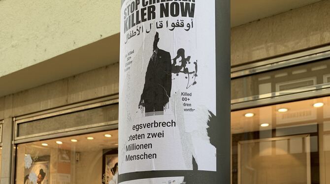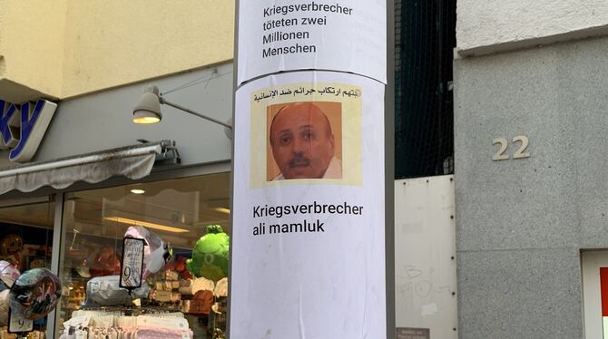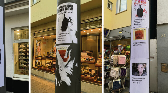 REUTLINGEN. Es erinnert irgendwie an den Wilden Westen. Profilbilder von Menschen hängen an den Laternenmasten in der unteren Wilhelmstraße. Layout und Druckqualität sind dürftig, manche Fotos sind schon halb oder ganz abgerissen. Kriegsverbrecher steht unter den Namen. Fehlt nur noch ein Kopfgeld-Hinweis und man würde sich in die USA des 19. Jahrhunderts zurückversetzt fühlen.