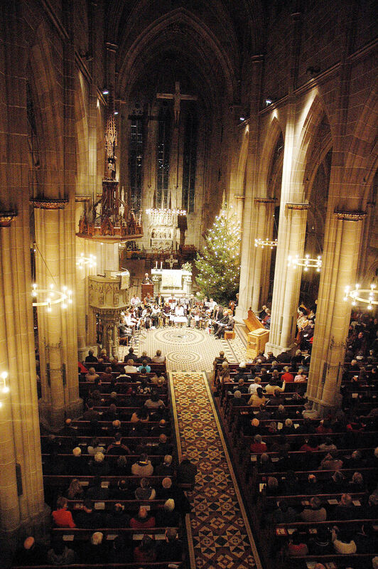 Evangelische Tradition ist die Christvesper, die mit Einbruch der Dunkelheit gefeiert wird – im Gegensatz zur Christmette, die traditionell auf Mitternacht gelegt wird. Daher gibt es in fast allen evangelischen Kirchen musikalische Gottesdienste am frühen Abend. Die Christvespern beginnen in der Regel um 18 Uhr. In der Marienkirche singt die Kantorei im ersten Festgottesdienst, der um 17 Uhr beginnt. Als Alternative zu diesem meist sehr gut besuchten Ereignis gibt es einen zweiten festlichen Gottesdienst mit Projektchor und -orchester um 18.30 Uhr.