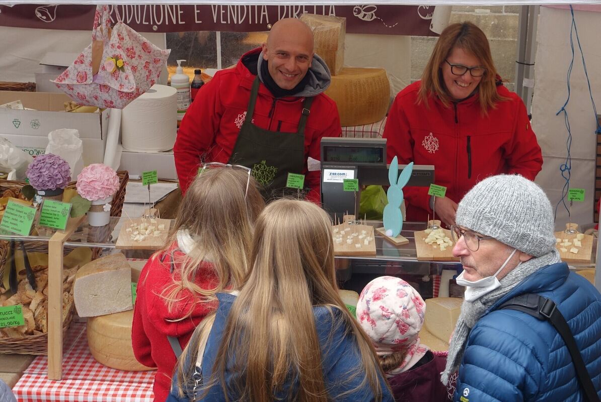Elf Direktvermarkter aus Pistoia und seiner Provinz verleihen der Südseite der Marienkirche toskanisches Flair: Sie haben ihre leckeren Erzeugnisse im Gepäck – vom würzigen Parmigiano über die geradezu legendären Schinken- und Wurstwaren des prominenten italienischen Slow-Food-Metzgers Fausto Savigni, bestem nativen Olivenöl und verlockenden Süßigkeiten bis hin zu fruchtig-bodenständigen toskanischen Weinen. Natürlich wird der Gaumen auch wieder zum Beispiel mit Spanferkel gekitzelt.