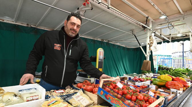Domenico Arcuri ist ein Neuzugang auf dem Reutlinger Wochenmarkt. Im Sortiment hat er allerlei kalabrische Spezialitäten.