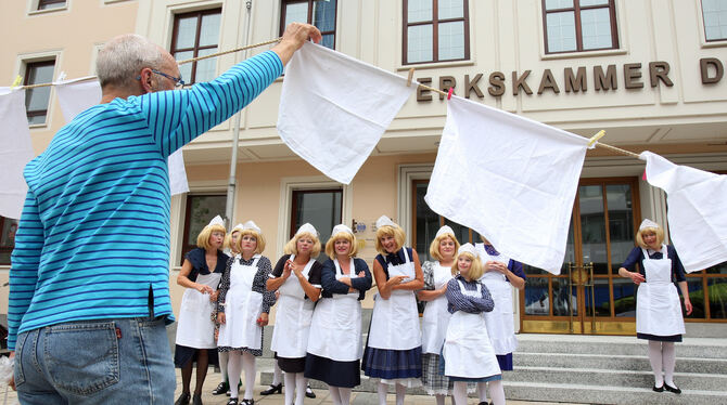 Am Samstag, 18. März, wird es dann bunt und trubelig: An diesem Tag, an dem in Reutlingen die Flotten Feger zur Stadtputzete schreiten, ist Kultur vom Rande vorne mit dabei: fleißige Frauen des Blaumeier Ateliers Bremen sind um 9.30 und 10.45 Uhr am Start und bespaßen die Stadt. Und zwar interaktiv. Denn da müssen Passanten schon mal eine Wäscheleine halten oder den Besen schwingen ... Komische, witzige und absurde Situationen entstehen und sorgen für Heiterkeit. Ab 12 Uhr wirbeln sie außerdem beim Dankeschön-Event der Technischen Betriebsdienste richtig Staub auf!