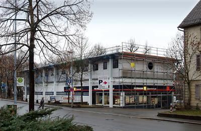 Der Rohbau fürs Rotlicht-Center steht. Ob unten mit oder ohne Sex-Videothek, darüber wird noch gestritten.