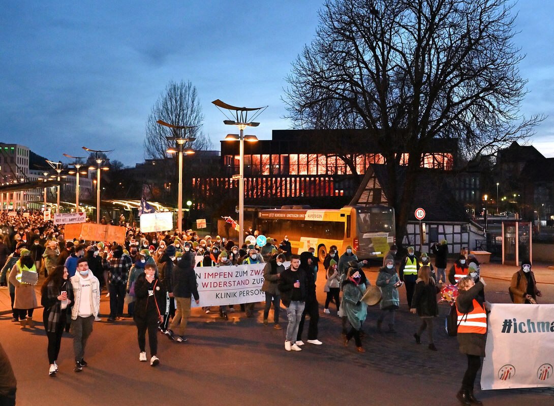 Reutlinger Demonstranten ziehen durch Reutlingen.