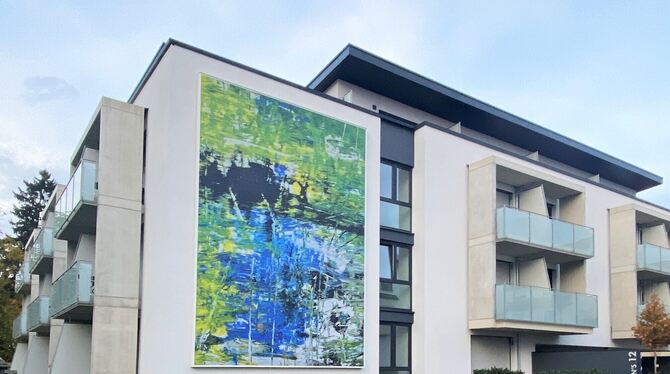 Obwohl das Reutlinger Urgestein Lukaszewitz bereits vor fast genau zwei Jahren verstorben ist, hat man sich bewusst für ein weiteres Werk aus seiner Schaffenszeit entschieden. Bereits 2019 hat die Firma an der Fassade eines Hauses in der Rommelsbacher Straße eine Dauer-installation des Reutlinger Kommunalpolitikers, Künstlers und Malers Lukaszewitz anbringen lassen. Zwei Jahre später bekam ein Werk von Michael Guiard seinen Platz an einem Apartmenthaus in der Gustav-Schwab-Straße.