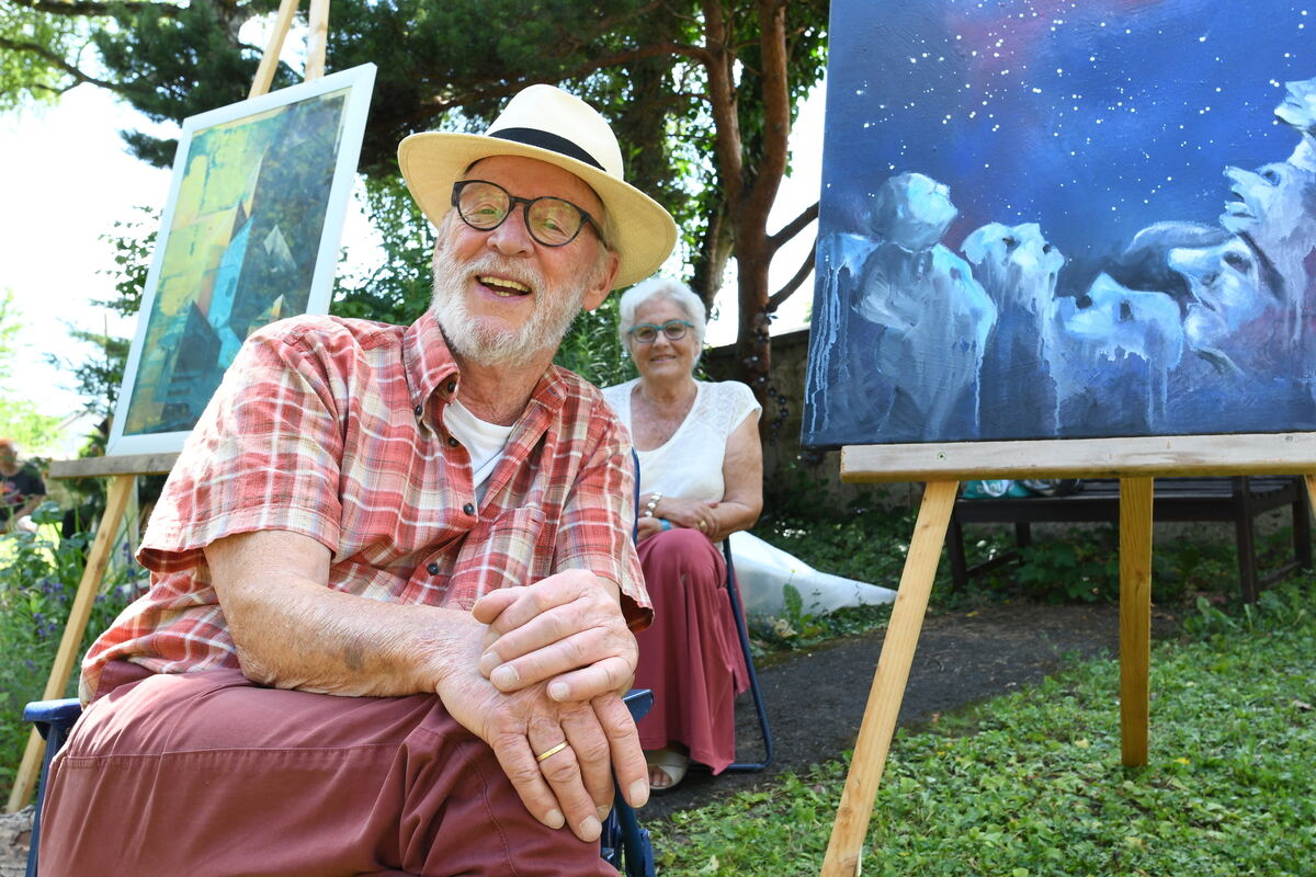 Künstler Gernot Bizer ist von Beginn an bei der »Kunst im Grünen« mit dabei, versteht offensichtlich auch etwas von Lebenskunst. Einfach im Schatten sitzen, ein Schwätzchen halten, alte und neue Bekannte treffen.