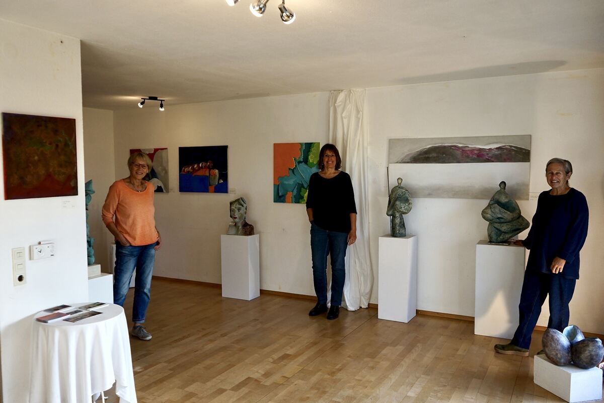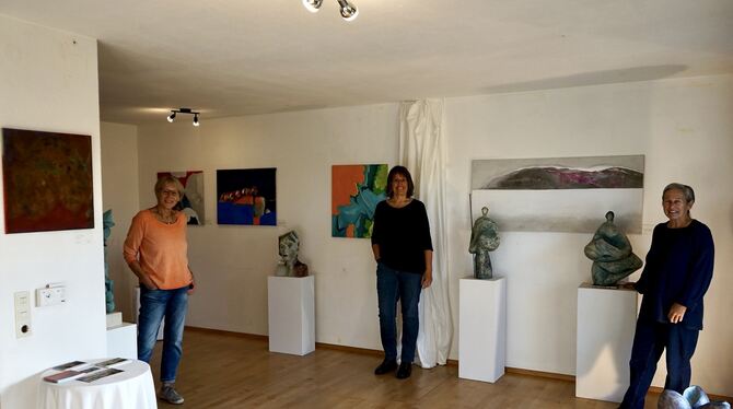 Heidi Morawski, Sabine Rockstroh und Susanne Wendt-Auda zeigen ihre Werke in der »Fliegenden Galerie« (von links).