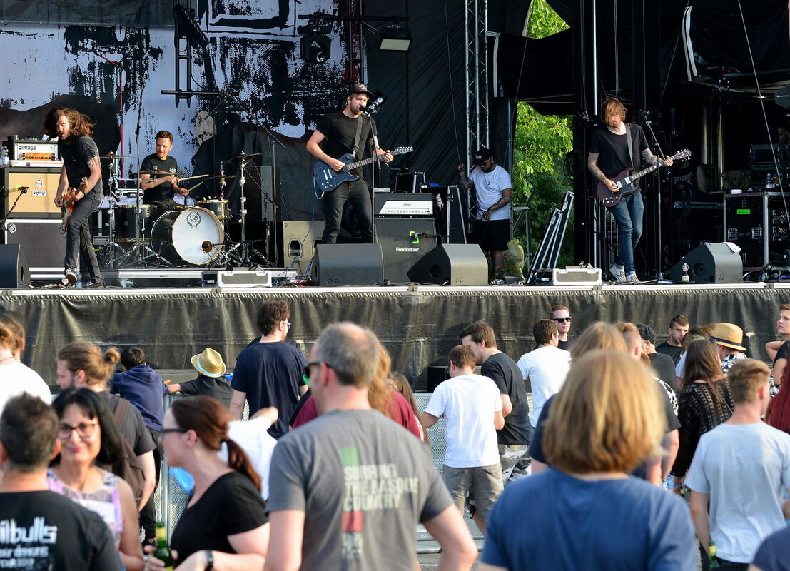 Mit melodiösem Rock eröffnete die Römersteiner Band Double UD 40 das KuRT-Festival um 16 Uhr. Und wie vorhergesagt zeigte sich der Wettergott fast schon von einer zu guten Seite, bescherte er den überwiegend jungen Besuchern strahlenden Sonnenschein, aber auch viel tropische Hitze.